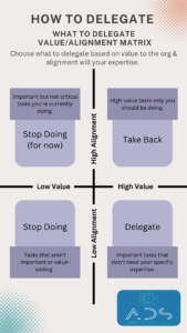 Value/Alignment Matrix Choose what to delegate based on value to the org & alignment will your expertise.